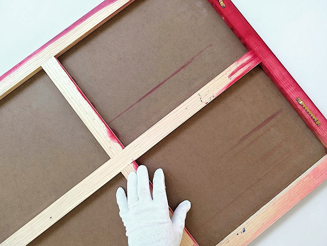 Spray paint, ink and chemical reactions on a wooden canvas
