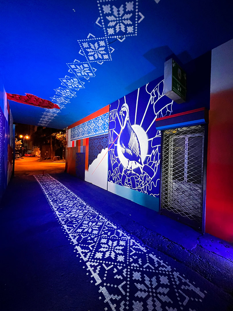 Transformation of a grey and dirty passage into a secret highlight. From an ugly place into a place to be.